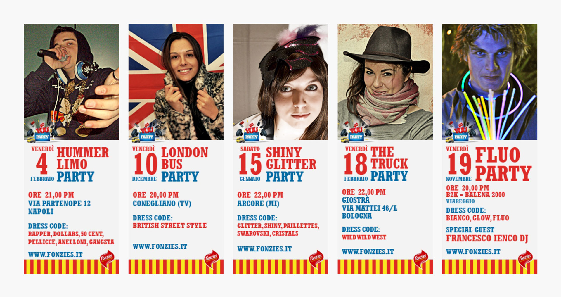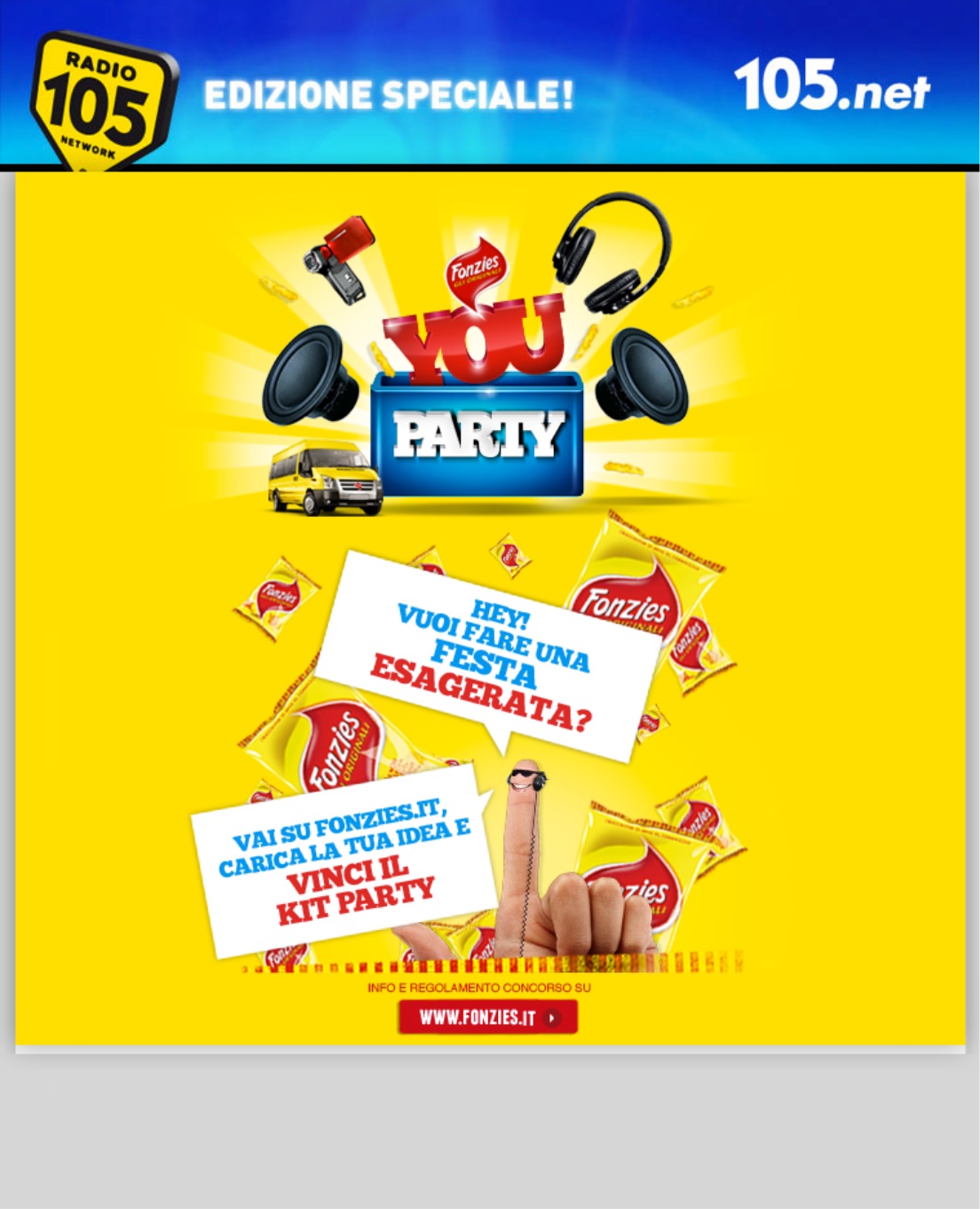 Una strategia che posiziona il brand nel territorio del divertimento e dà voce a un pubblico giovane, tecnologicamente evoluto e sempre connesso: questo il punto di partenza da cui è nato il concept YouParty, un’iniziativa cross mediale che coinvolge il target in modo da farlo diventare un vero e proprio party planner grazie a Fonzies. Un progetto che si sviluppa online, dove è possibile partecipare al concorso e proporre la propria idea di festa ideale, e offline, nel luogo in cui organizzare il party dei vincitori.